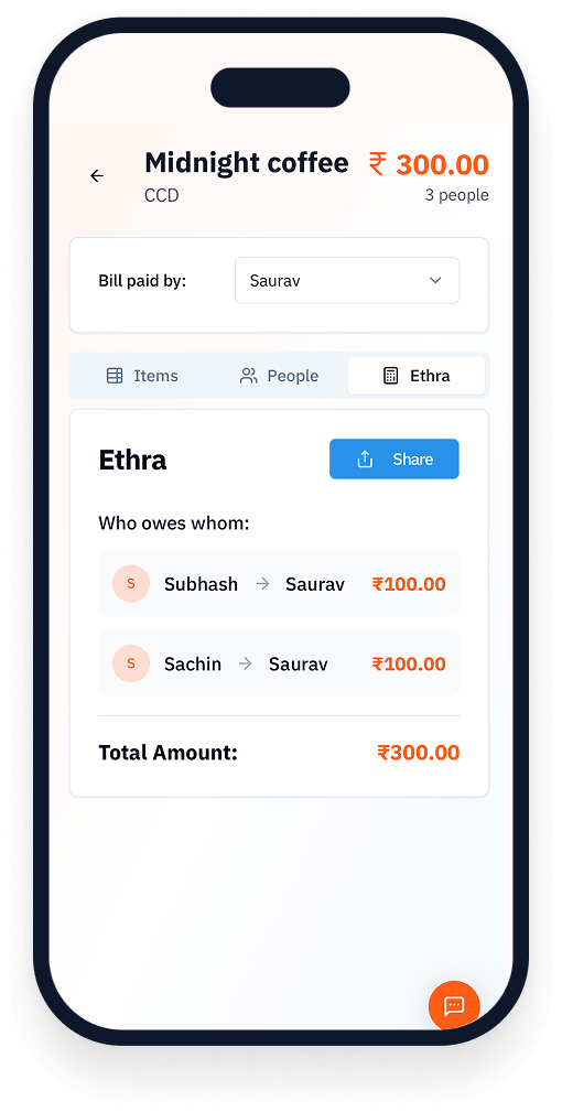 Ethra makes group bills simple, fast, and totally fuss-free.